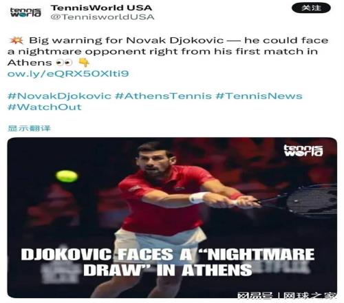 再来关注赛事消息,德约科维奇作为ATP250雅典站的头号种子,将在第二轮迎战智利选手塔比洛。