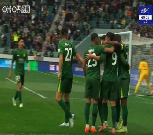第56分钟,林良铭打门被扑,张玉宁补射得手,国安将比分扩大为3-0!
