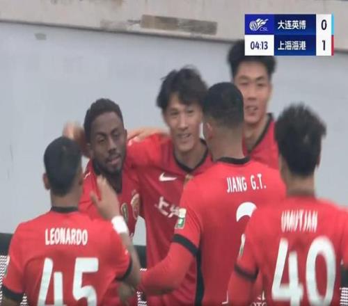 开场第4分钟,莱昂纳多送助攻,打穿大连后防线,加布里埃尔单刀破门,海港客场1-0!