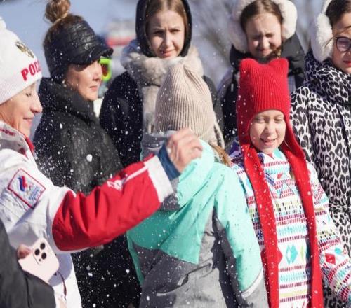 11月22日,外国游客在吉林市中旅松花湖度假区玩耍。 新华社记者 颜麟蕴 摄