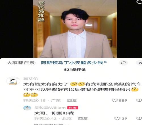 最近,CBA顶薪球员郭艾伦又一次出圈了。他随手发了条视频,调侃着想坐综艺嘉宾吴牧融的宾利副驾。