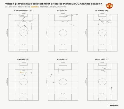 现在来说说更令人困惑的地方。库尼亚已经适应了老特拉福德,但曼联在适应他方面仍存在问题。库尼亚在传球选择上的习惯,与他上赛季在狼队时有着明显相似之处,但他与中锋之间的配合方式发生了变化。此前,库尼亚更习惯与一名长期驻守中路、牵制对方中卫、并能通过回做球帮助他前插的前锋合作。但在曼联,这种模式较难复制,因为伤病、疾病以及战术实验限制了谢什科的出场时间。