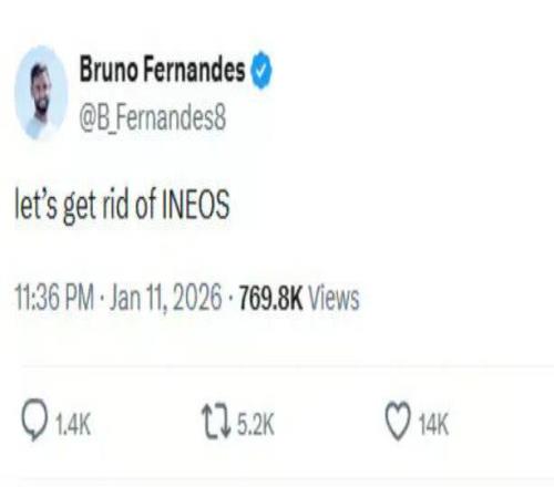在曼联足总杯遭到布莱顿淘汰后,队长布鲁诺·费尔南德斯的社媒账号发出一条惊人的炮轰老板吉姆·拉特克里夫爵士的信息:「干掉英力士!」