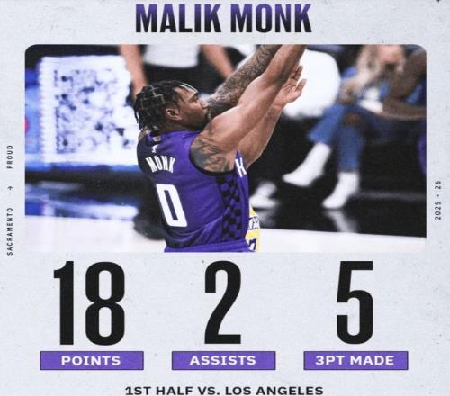 国王队这边,蒙克次节7中6,三分6中5砍下18分1助攻,单节18分也追平了个人生涯单节得分最高纪录,同时也是国王本赛季所有球员单节得分最高纪录;威少6投3中,三分2中1、罚球2中2得到9分2篮板4助攻。