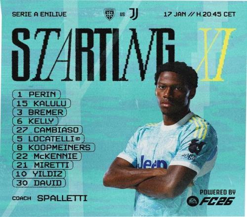 北京时间1月18日凌晨3点45分,意甲联赛第21轮展开一场焦点战役,尤文对阵卡利亚里。赛前,双方公布首发阵容。