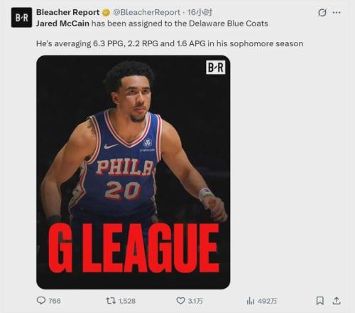 76人官方宣布:将“魔仙哥”贾里德-麦凯恩下放至发展联盟的特拉华蓝衫队。上赛季还是76人重点培养对象,这赛季却被边缘化:他已经连续五场比赛出战不足10分钟,其中有一场被DNP。已有多支球队致电76人,正式询价麦凯恩。