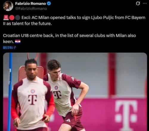 罗马诺写道:“独家消息:AC米兰已开启从拜仁慕尼黑二队签下普尔季奇的谈判,将其视为储备未来的天才球员。”