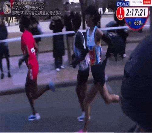 过30公里,矢田美久的用时为1:39:21,属于全马的真正挑战也开始了。那时,日本其他选手陆续掉队,矢田成为日本选手和非洲选手抗争的独苗。