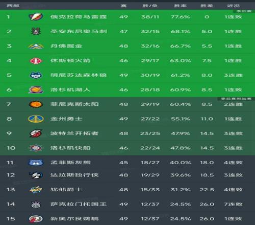 NBA最新积分榜:掘金3分险胜,森林狼3连胜,火箭第4,湖人第6