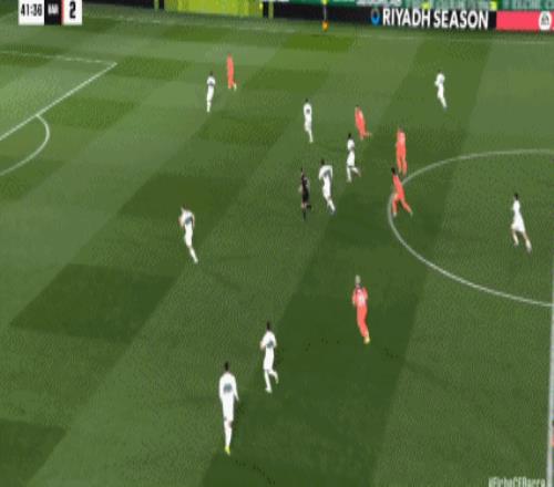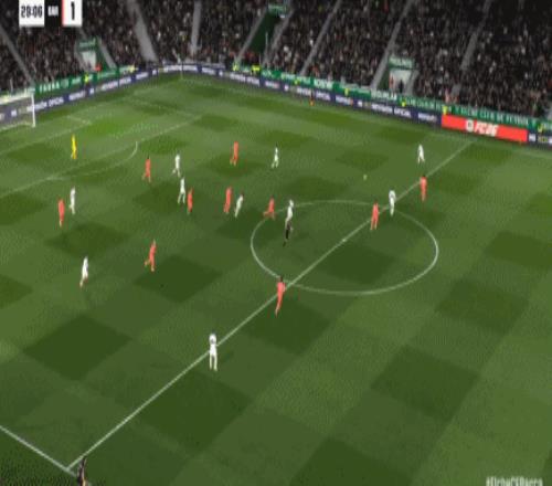 第42分钟,费尔明包抄近距离打门,皮球高出横梁