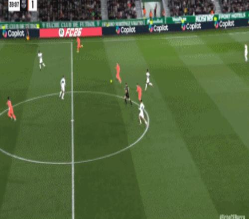 第40分钟,德容冷静回做,费兰-托雷斯推射破门,巴萨2-1!