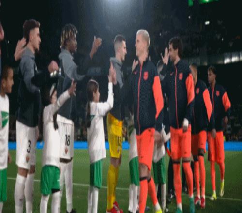 双方球员步入球场,比赛即将打响