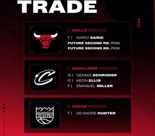 NBA官方正式宣布了骑士、国王、公牛达成的三方交易——