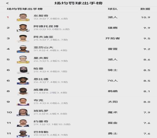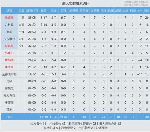 最后看看比赛数据,满分10分,你给肯纳德首秀打几分?
