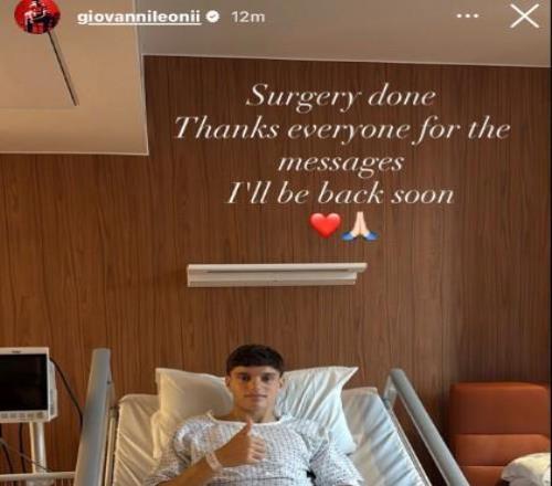 在完成手术后,莱昂尼通过个人社交媒体账号向外界报喜:“手术完成。谢谢大家的支持和留言。我会很快回来的。