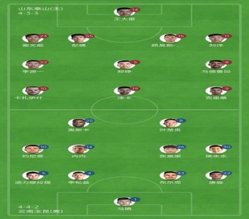 中超泰山VS云南首发阵容出炉:泽卡复出,“三叉戟”重装上阵