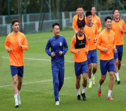 10月3日下午,山东泰山队在基地内进行了与云南玉昆队的赛前官方训练。