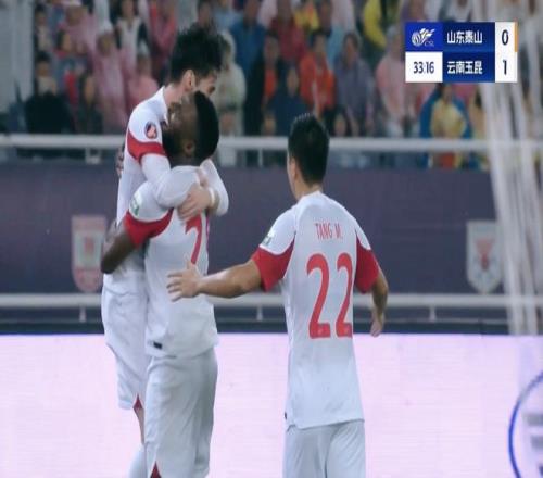 第44分钟,泰山队前场外援三叉戟打出精妙配合,卡扎伊什维利脚后跟妙传,克雷桑门前推射,再度被马镇神奇扑出!半场比赛结束,云南玉昆暂时一球领先。