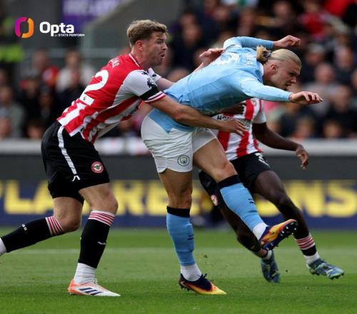 此役客场对阵布伦特福德,首发出战的哈兰德在比赛第9分钟破门,这是哈兰德英超生涯首次在布伦特福德社区球场取得进球。