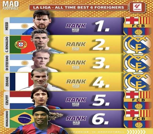 近日 MADFOOTBALL 发布“西甲历史最佳外援6人”榜单。最大争议很直接:大罗等诸多知名选手竟然没进。这份榜单到底更看“打得久”还是“巅峰强”?下面按统一口径给出入选者与遗珠的硬指标,最后再说我觉得谁该把谁换下。