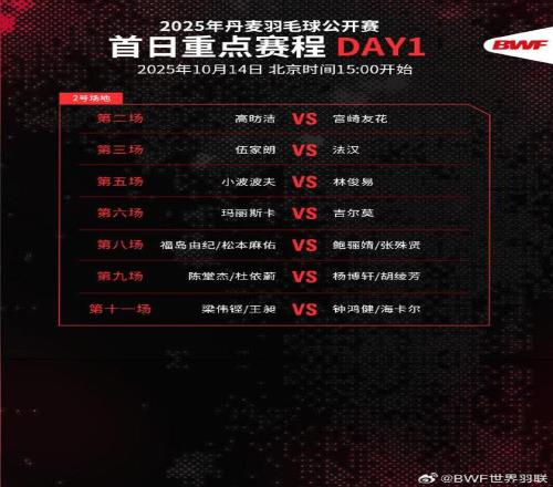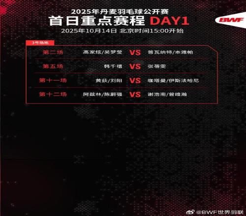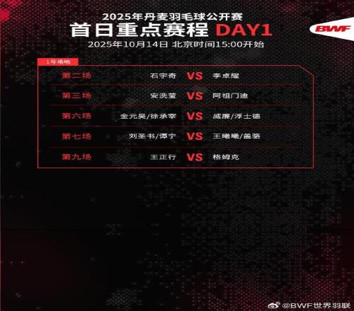 10月14日,丹麦羽毛球公开赛今日打响,国羽全主力出战。石宇奇将迎来巴黎世锦赛夺冠后的首次亮相。