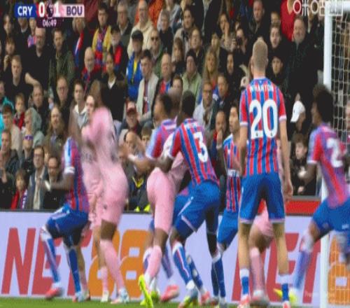 第90+7分钟,格伊造点,马特塔主罚点球命中,水晶宫3-0伯恩茅斯