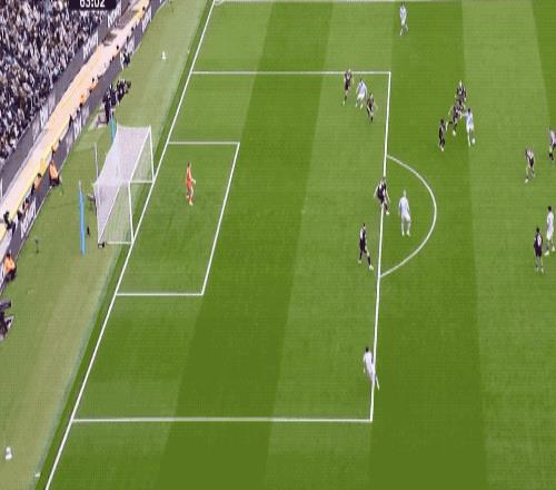 第92分钟,替补登场扮演中锋角色的阿劳霍打进了莱万多夫斯基的同款进球。