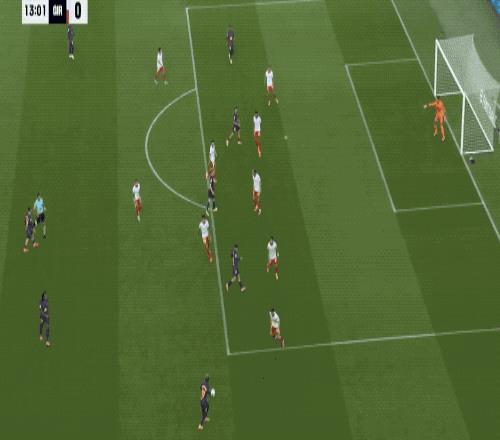 第13分钟,巴萨前场打出流畅配合,亚马尔传球,佩德里在禁区内横向盘带,突然起脚打向反角度,门将扑救不及。