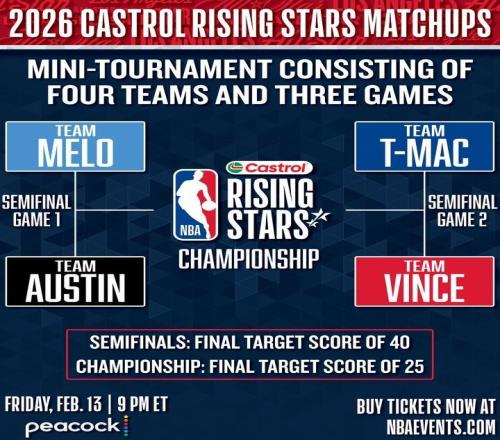 北京时间1月31日,NBA官方公布了2026年全明星新秀赛的对阵形势,杨瀚森所在的G联赛队将对阵由拥有弗拉格和克林根并由卡梅隆-安东尼挂帅的Team Melo。2026NBA全明星新秀赛对阵:安