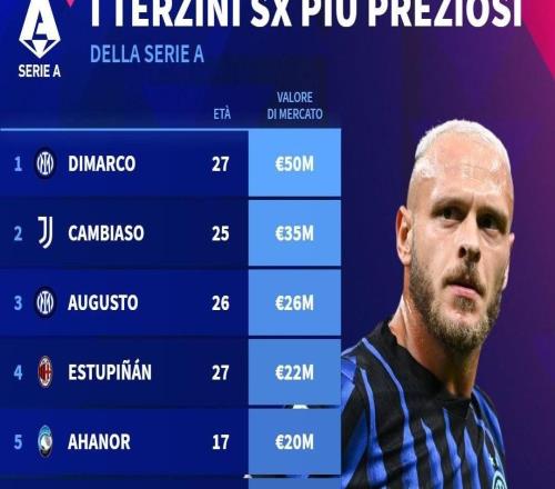 德转列意甲左后卫身价:迪马尔科5000万欧居首,坎比亚索第二
