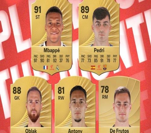 雷速体育10月22日宣 西甲官方公布了10月最佳球员的五位候选人,姆巴佩连续三个月进入提名,佩德里、安东尼在列。入选球员10月份数据姆巴佩:2球1助安东尼:2球0助佩德里:1球1助德弗