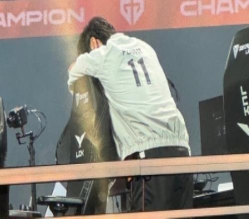 体育资讯9月28日称 粉丝晒照:HLE落败后peanut趴在电竞椅上,疑似抹泪。